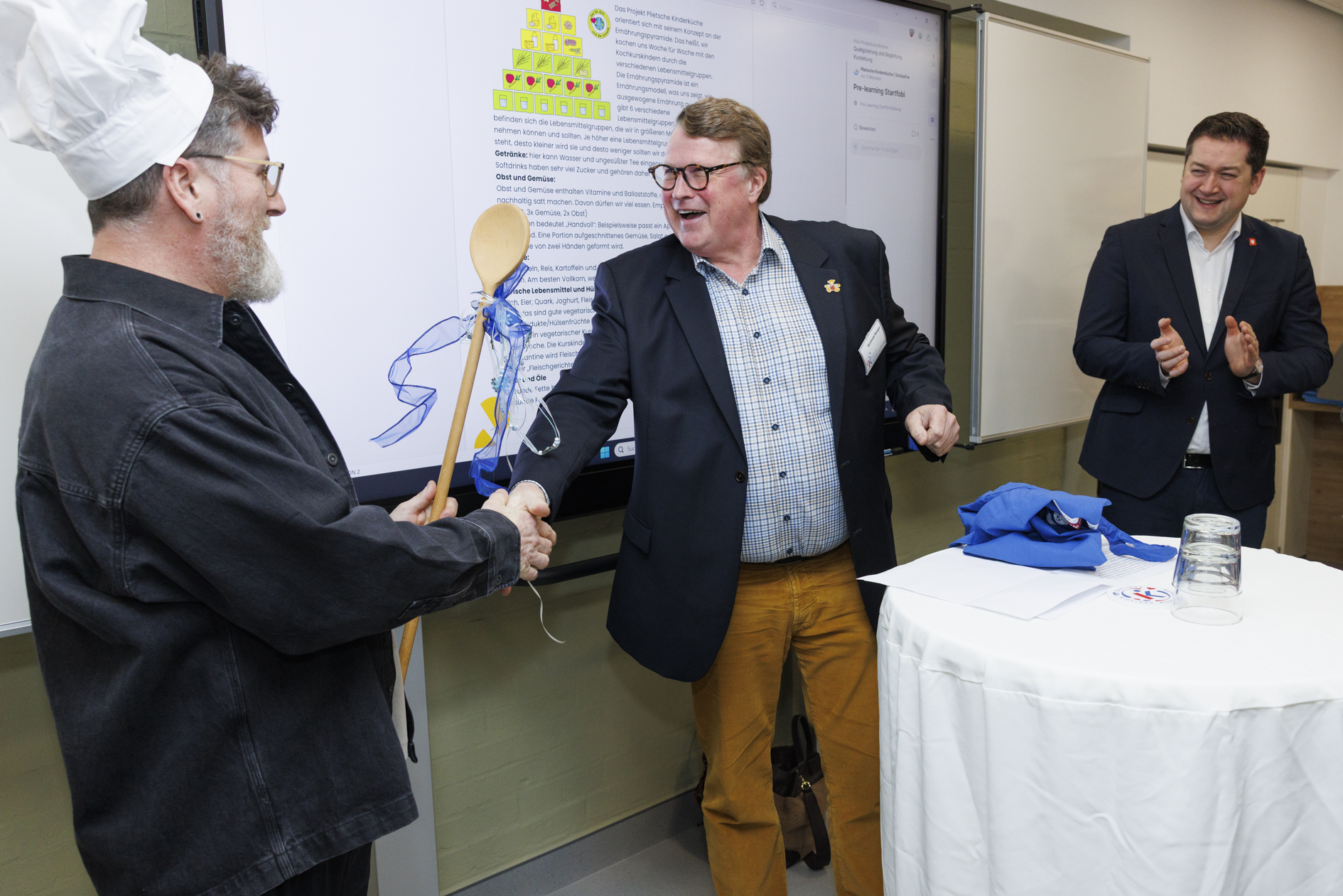 Das Programm der "Plietschen Kinderküche" sieht so aus: Einmal pro Woche kochen dann zwei Mitarbeiter, teilweise ehrenamtlich, mit zehn bis zwölf Kindern. Die Kurse beginnen mit einer Begrüßungsrunde, in der die Kinder die Rezepte besprechen und mehr über die Herkunft der Lebensmittel erfahren. Unterstützt durch das neue ActivePanel im Raum können die Kinder interaktiv lernen, beispielsweise anhand der Lebensmittelpyramide oder einer Weltkarte. Ab dem neuen Schuljahr sollen zwei Kurse pro Woche angeboten werden. Das erste Halbjahr wird eng begleitet, um eine nachhaltige Umsetzung sicherzustellen.